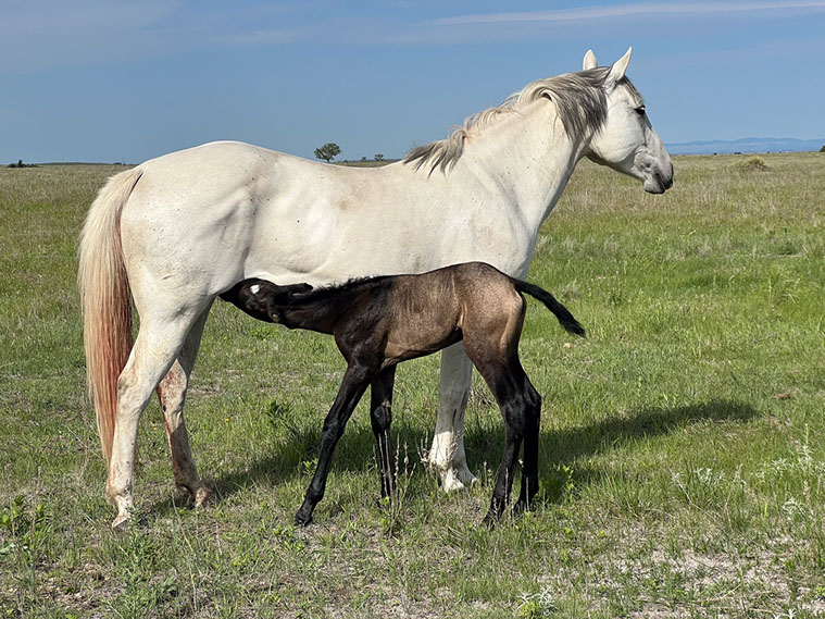 Our last baby out of a first time mare. She is not going to have the bloom of some of the others as mom does not milk so well yet. This filly is very curious and is always looking for something to do.