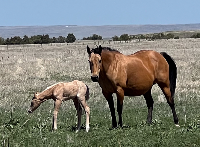 Top Gun was injured shortly after turnout with his mares during the 2024 breeding season. We are 90% certain that these listed are his foals but are doing parentage verification with AQHA and will post results when they come in.
