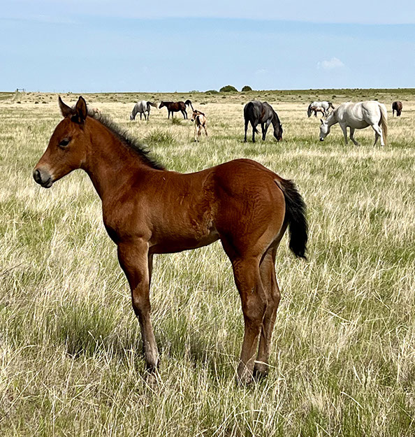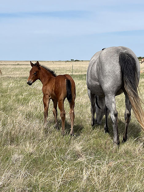 Number Nine Wire has been ridden in the sale barn, calving and had some tie down roping training and he was showing some ability. Vegas Resort, has his Performance ROM, has qualified for the World Show in Open Heading, Heeling, Tie Down Roping and Performance Halter. Popular Resortfigure, "Pop Tart" is the 2002 Superhorse with multiple world championships. Sire of many NFR Tie Down horses ridden by the top PRCA ropers.